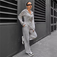 Modern Women Zip Front Hoodie and Loose Wide Leg Pants Casual Lounge Set